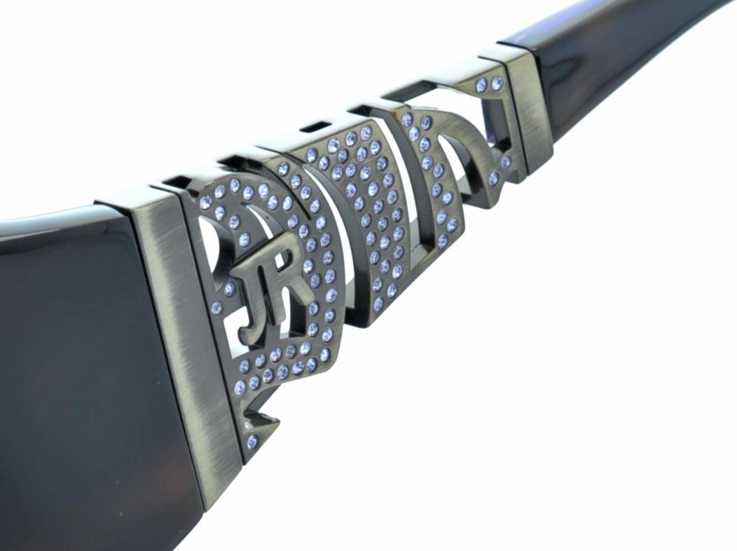Hochwertige und extravagante Damen-Sonnenbrille des Kultlabels John Richmont. Der elegante havannafarbene Kunststoffrahmen ist zeitlos schön. In den extravaganten Bügeln ist das JR Logo prägnant auf dem goldfarbenen Scharnier platziert. Dazu umrandet mit vielen violetten Strasssteinen. Ein Toller Hingucker.